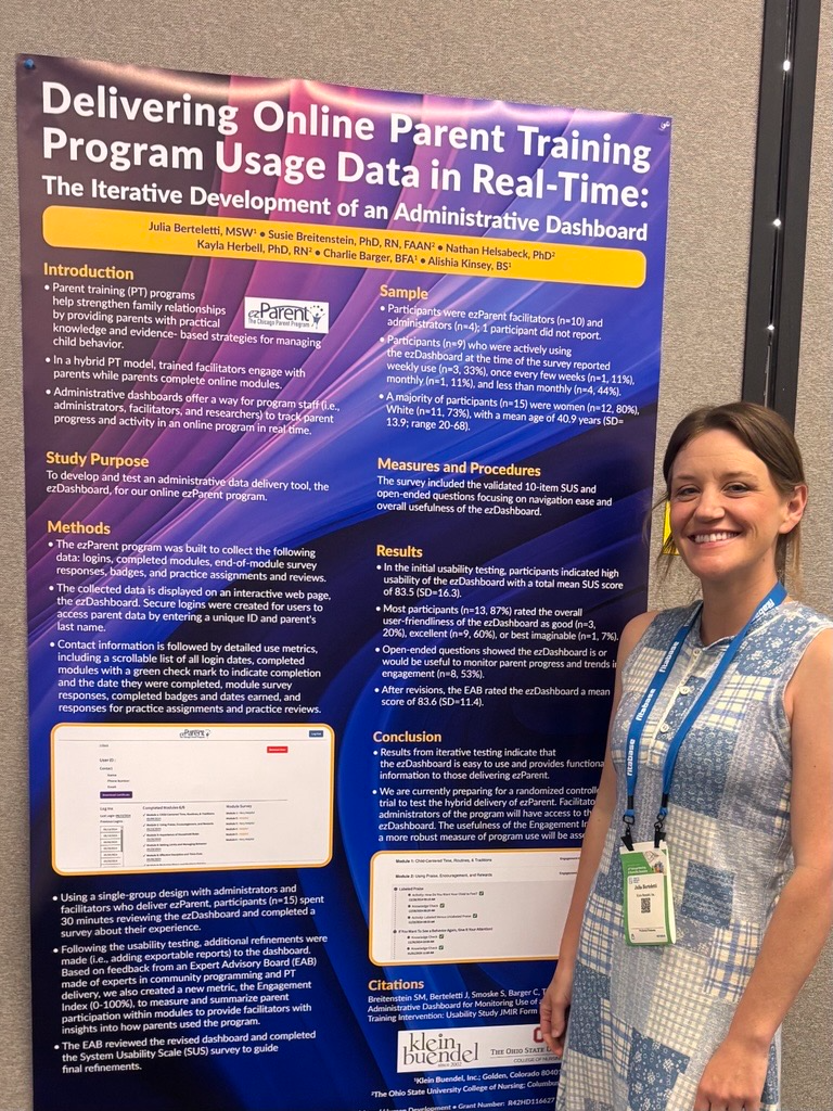 Results from iterative testing indicate that the ezDashboard is easy to use and provides functional information to those delivering ezParent. Next, the ezDashboard will be used in a randomized controlled trial testing hybrid delivery of ezParent. The usefulness of the Engagement Index as a more robust measure of program use will be assessed.